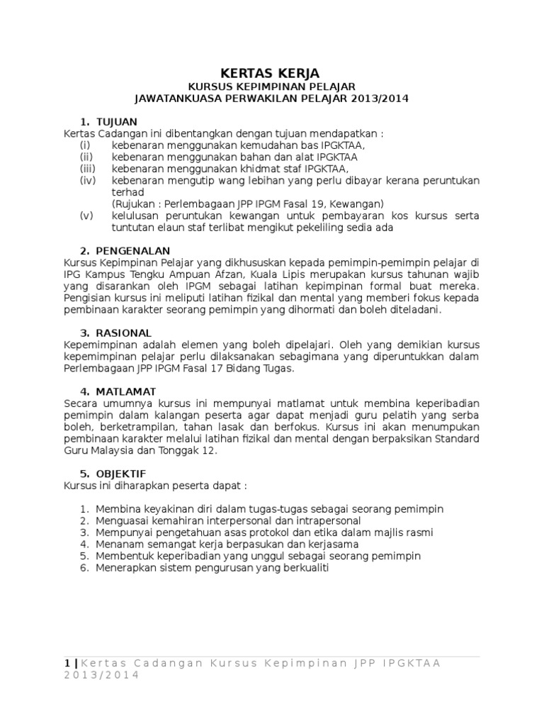 Kertas Kerja Kursus Kepimpinan Pdf